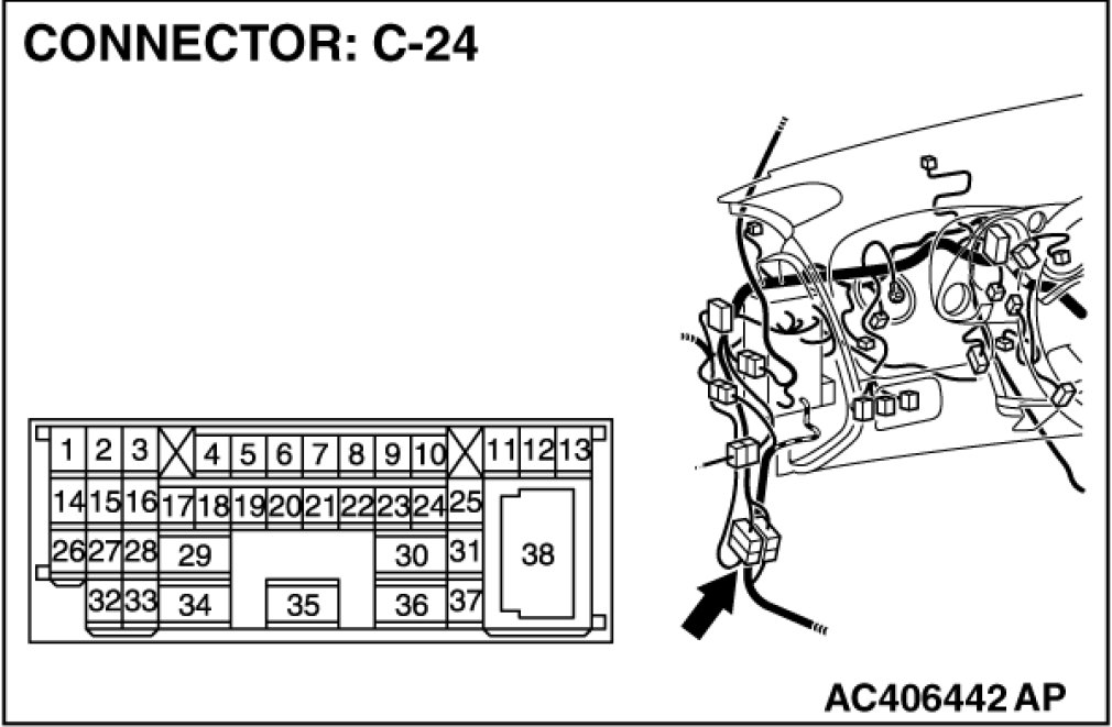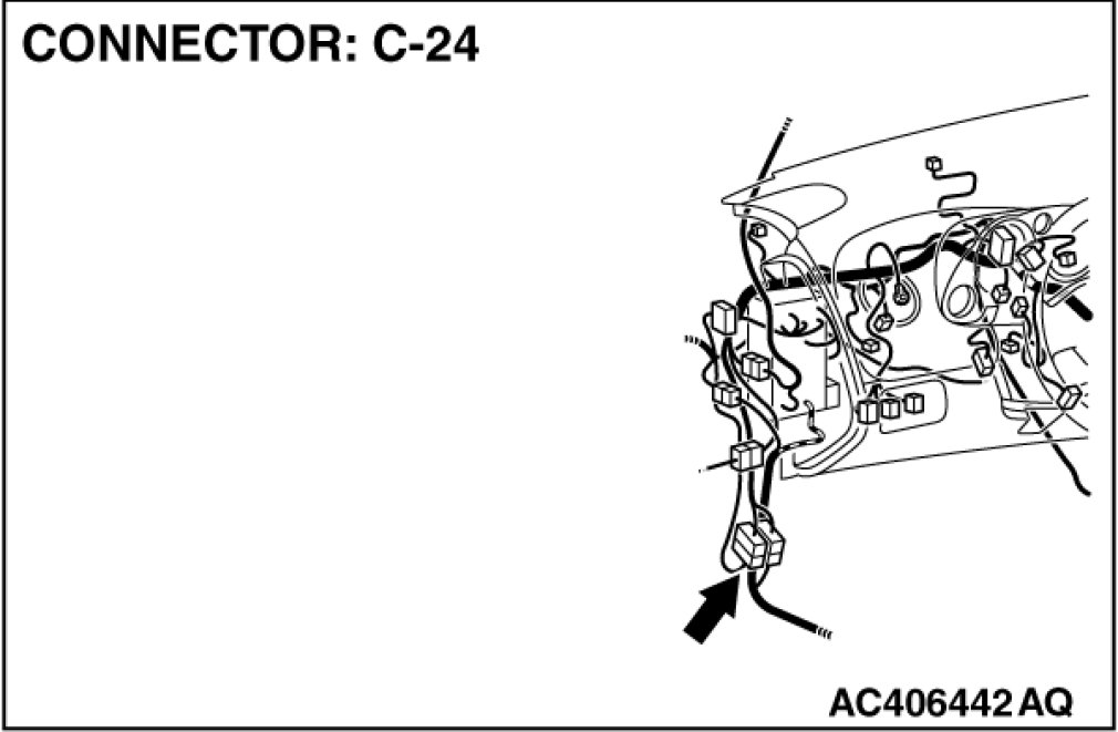 Also check intermediate connector C-24 for loose, corroded, or damaged terminals, or terminals pushed back in the connector. If intermediate connector C-24 is damaged, repair or replace the damaged component(s) as described in Harness Connector Inspection Harness Connector Inspection.