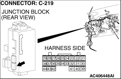 STEP 19. Check ETACS-ECU connector C-219 for loose, corroded or damaged terminals, or terminals pushed back in the connector.