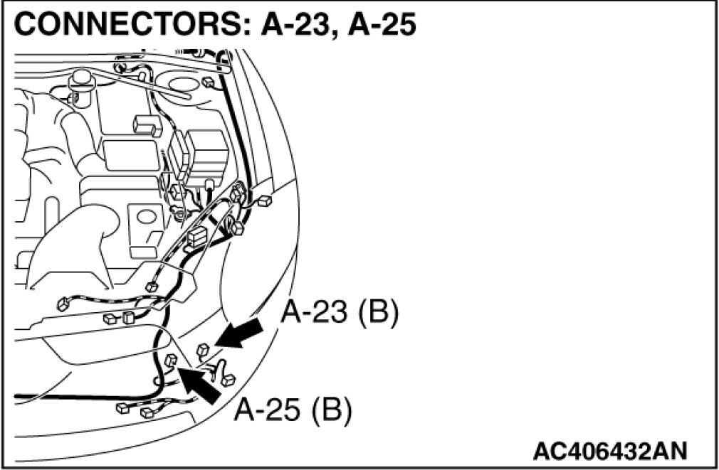 STEP 7. Check horn (HIGH) connector A-25 for loose, corroded or damaged terminals, or terminals pushed back in the connector.
