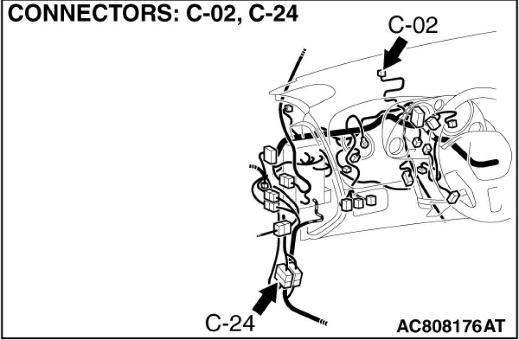 STEP 6. Check security indicator connector C-02 for loose, corroded or damaged terminals, or terminals pushed back in the connector.