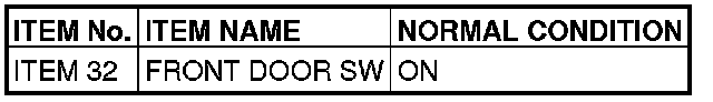 Q. Does the scan tool show the respective normal condition for item "FRONT DOOR SW."?