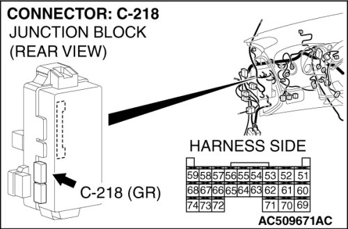 (1)Disconnect ETACS-ECU connector C-218, and measure at the wiring harness side.