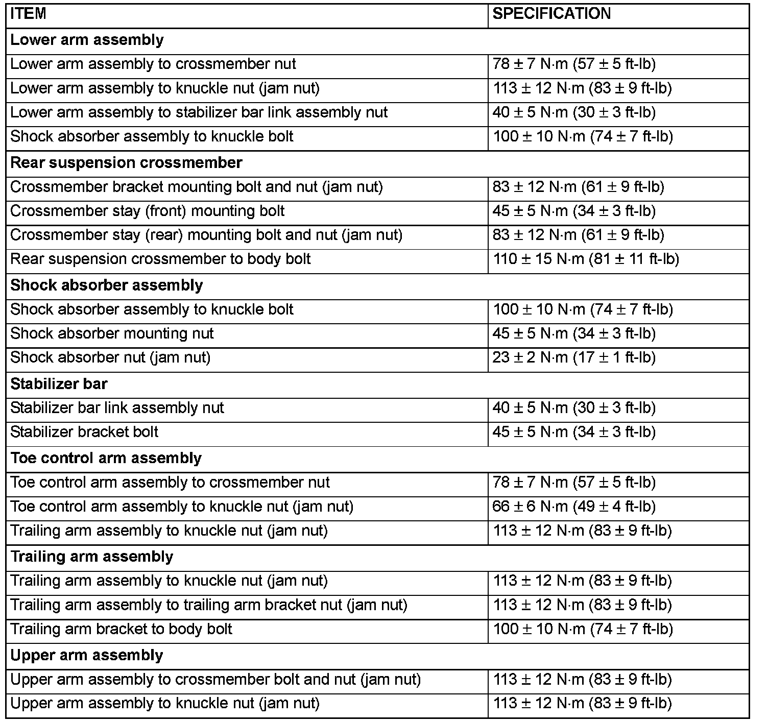 Rear Subframe: Specifications