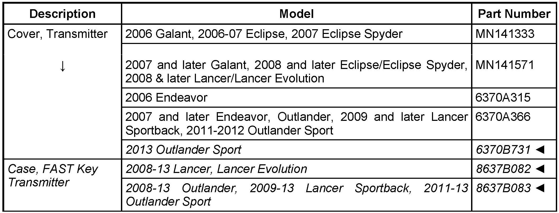 This TSB supercedes TSB-09-42A-015, issued October, 2009, to update affected vehicles, add Outlander Sport and add FAST Key case part numbers. Changes are indicated by <.