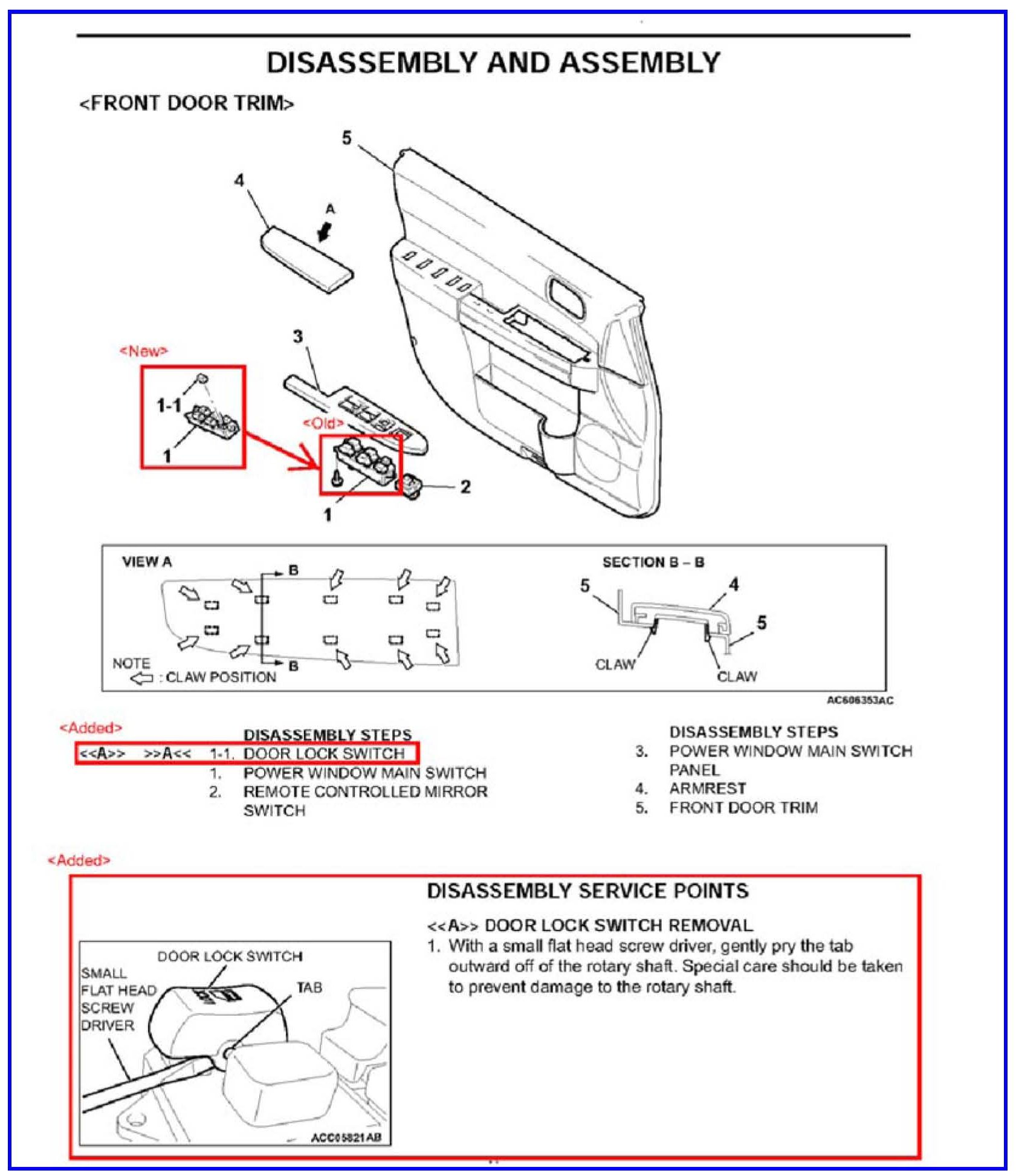 DOOR LOCK ROCKER SWITCH BUTTON REPLACEMENT - SERVICE MANUAL REVISION