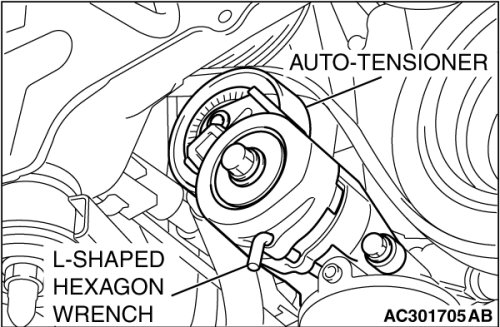 The following operations are required due to the serpentine drive system with the drive belt auto-tensioner.