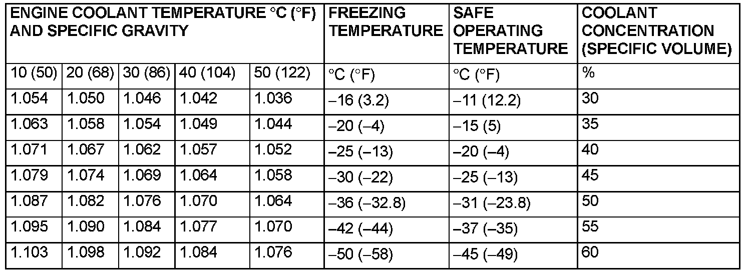 The safe operating temperature is -15°C (5°F) when the specific gravity is 1.058 at the coolant temperature of 20°C (68°F)