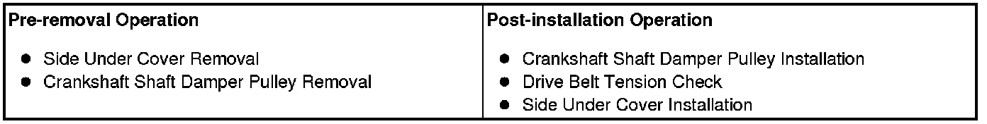 Always check the tightening torque of the crank shaft pulley center bolt when turning the crank shaft pulley center bolt counterclockwise. Re-tighten if it is loose.