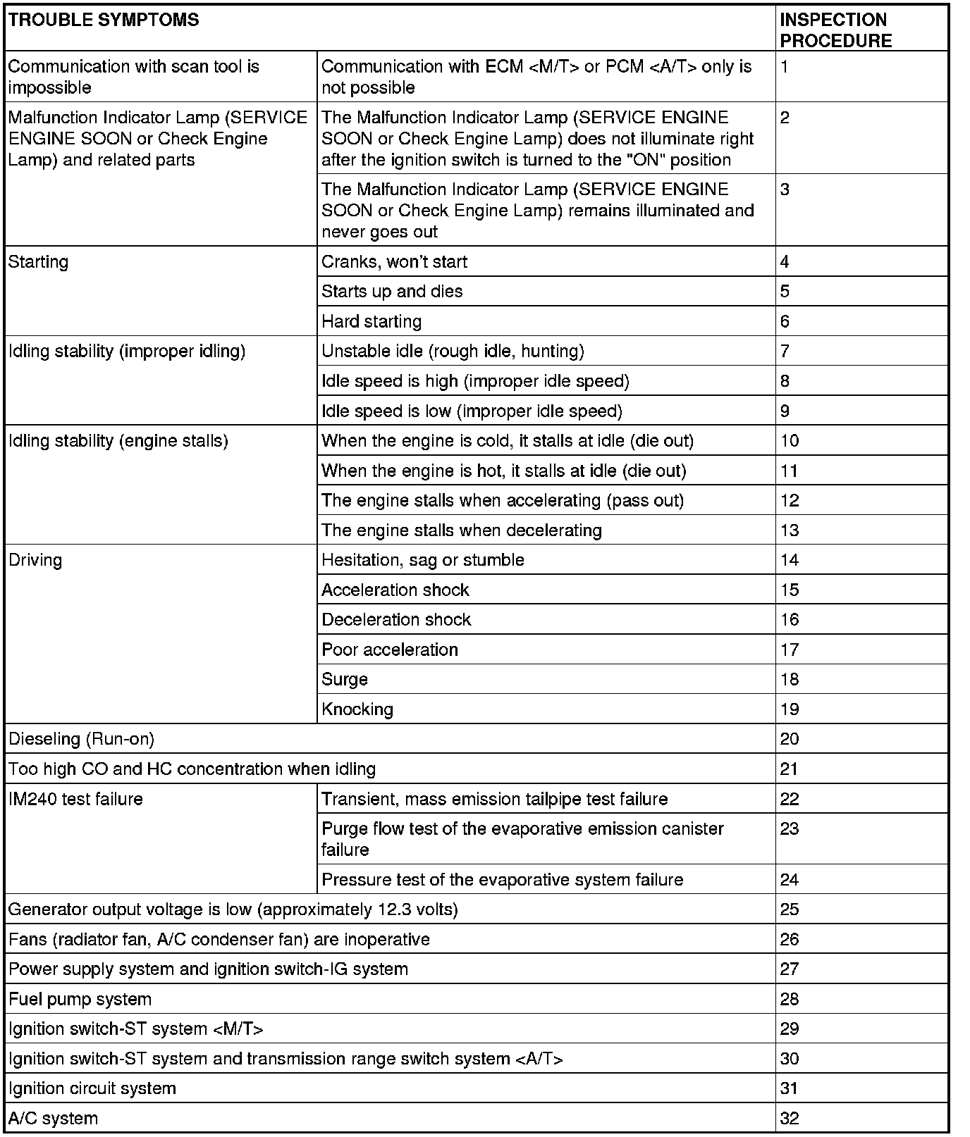 Check that the ECM [M/T] or the PCM [A/T] ground circuit is normal before checking for the cause of the problem.
