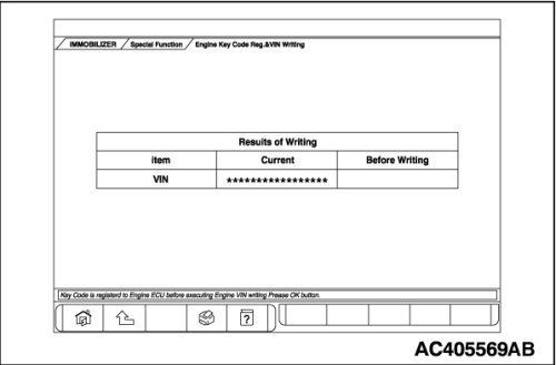 11. When the VIN writing completion menu is displayed, press the OK button.