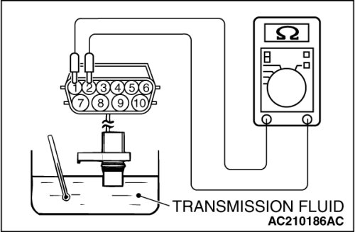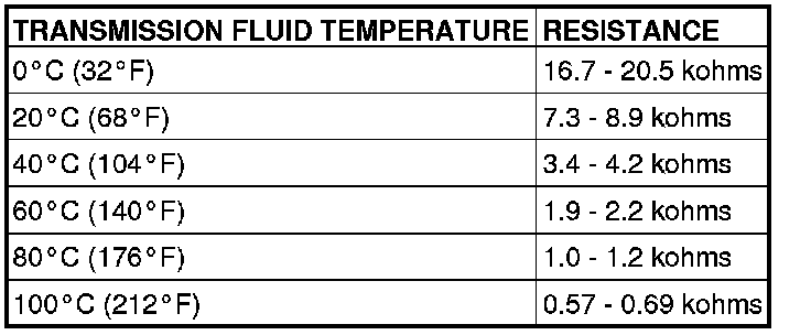 3. If the transmission fluid temperature sensor resistance is outside the specified range and the shift indicator light (D or 1 through 4 or 5) is flashing, replace the transmission fluid temperature sensor.