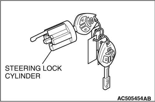 - When adding the ignition key separately, or replacing the components by the steering lock cylinder of illustration[ A] (the ignition key is simultaneously supplied) or the key set of illustration[ B], register the encrypted code. Immobilizer System.