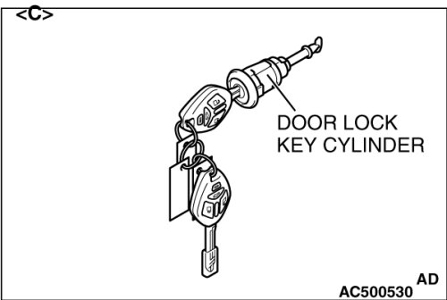 - When replacing the components by the door lock key cylinder of illustration[ C] or the glove box lid lock cylinder of illustration[ D], do not register the encrypted code with the bar code on the ignition key which is supplied to each lock cylinder simultaneously.