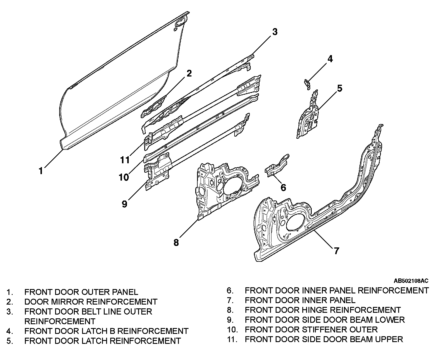 - A large front door hinge reinforcement and a large front door latch reinforcement have been adopted to improve the mounting surface rigidity of the area connecting with the door window regulator assembly.
