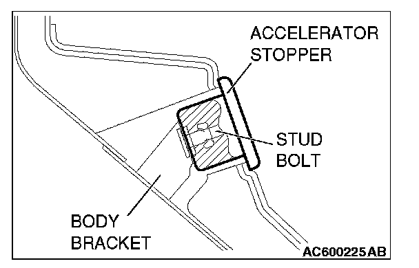 2. Install the accelerator stopper securely by turning it clockwise until its underside contacts with the body bracket as shown in the figure.