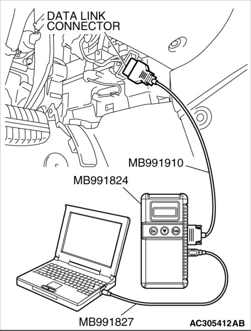 12. Use the scan tool MB991958 to erase the diagnostic trouble codes.