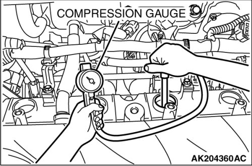 8. Measure the compression pressure for all the cylinders, and check that the pressure differences of the cylinders are below the limit.