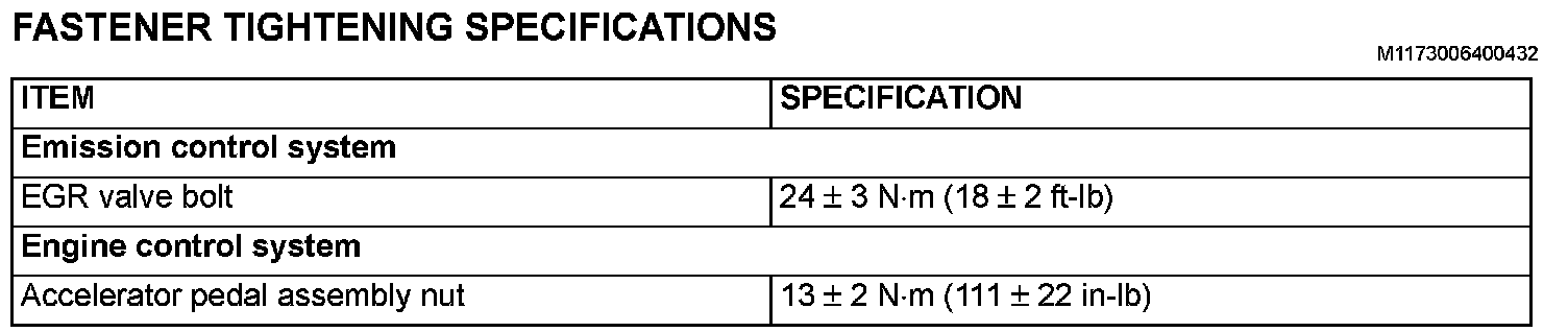 FASTENER TIGHTENING SPECIFICATIONS