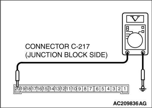 (1)Disconnect ETACS-ECU connector C-217 and measure the voltage available at the junction block side of the connector.