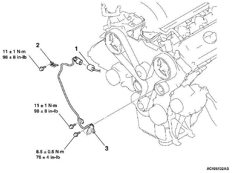 2. Tighten the crankshaft position sensor mounting bolts by hand.