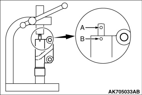 2. Push in the rod little by little with the longitudinal type press until set hole A in the rod is aligned with hole B in the cylinder.