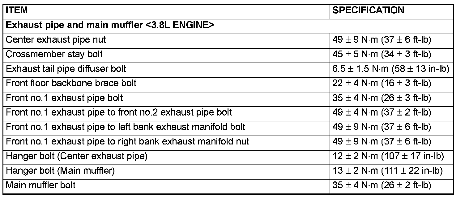 FASTENER TIGHTENING SPECIFICATIONS