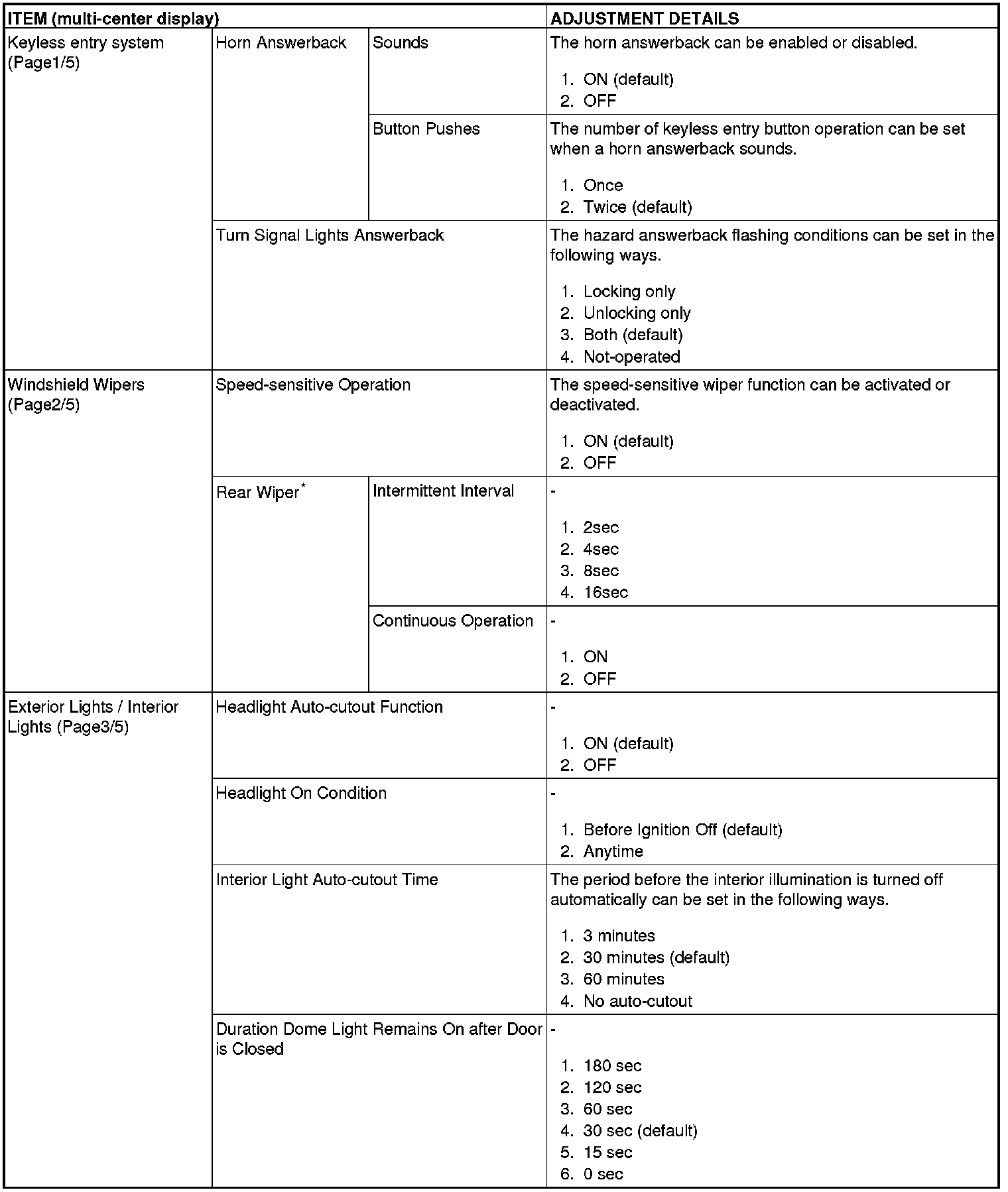 *The item of the rear wiper is shown on the display, but the rear wiper can not be customized because it is not equipped on GALANT.