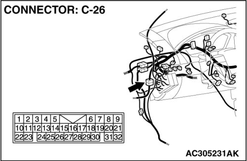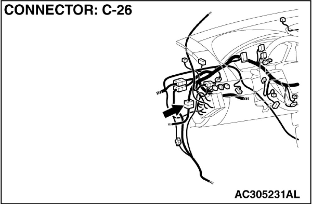 Also check intermediate connector C-26 for loose, corroded, or damaged terminals, or terminals pushed back in the connector. If intermediate connector C-26 is damaged, repair or replace the connector as described in Harness Connector Inspection Harness Connector Inspection.