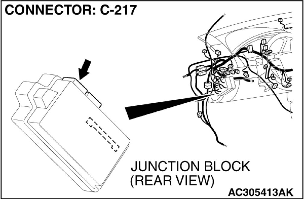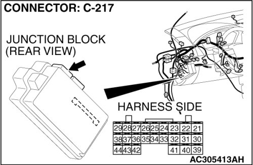 STEP 6. Check ETACS-ECU connector C-217 for loose, corroded or damaged terminals, or terminals pushed back in the connector.