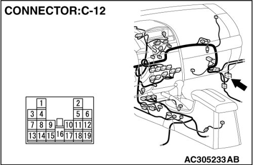 Also check intermediate connector C-12 for loose, corroded, or damaged terminals, or terminals pushed back in the connector. If intermediate connector C-12 is damaged, repair or replace the connector as described in Harness Connector Inspection Harness Connector Inspection.