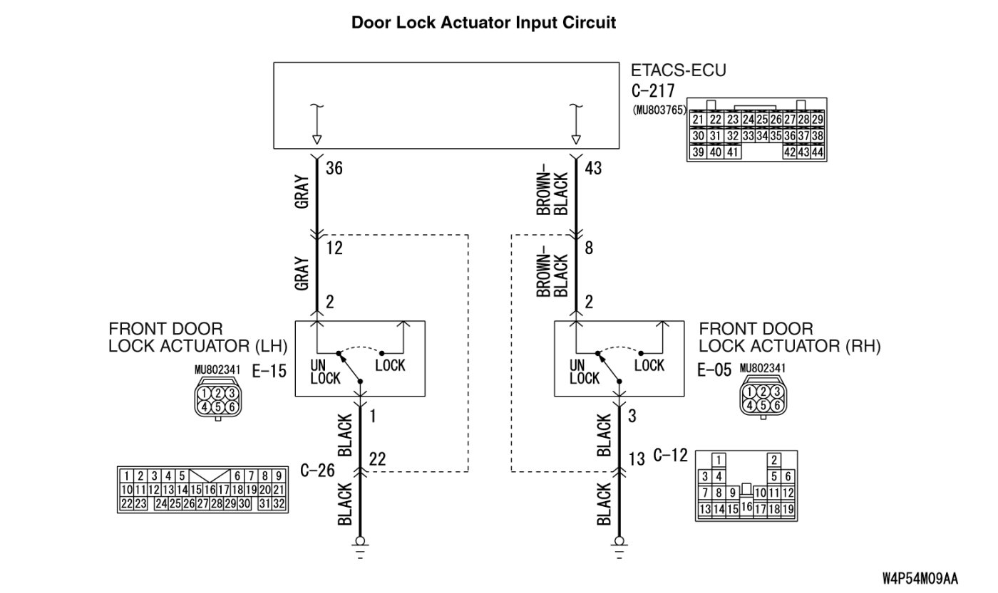 INSPECTION PROCEDURE N-4: ETACS-ECU does not receive one of signal from the front door lock actuator.