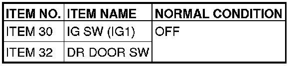 Normal condition is not displayed for "DR DOOR SW" : Refer to Inspection Procedure M-4 "ETACS-ECU does not receive any signal from the front door switches Inspection Procedure M-4."