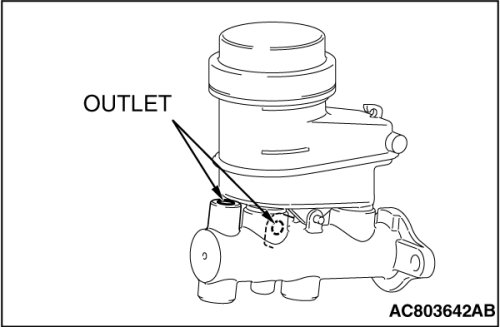 The master cylinder used has no check valve, so if bleeding is carried out by the following procedure, bleeding of air from the brake pipeline will become easier. (When brake fluid is not contained in the master cylinder).