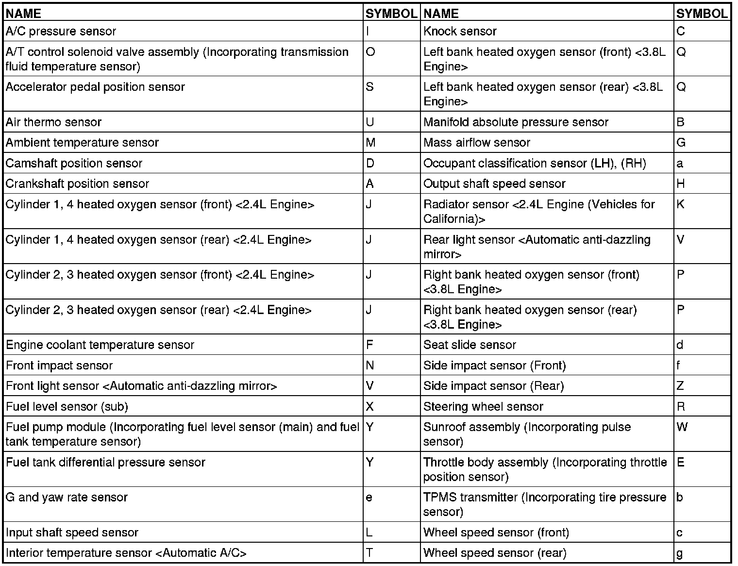 The * symbols indicate equipped at both sides.