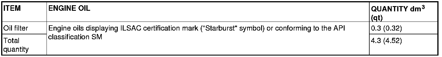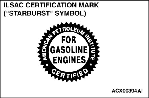 Use only engine oils displaying the ILSAC certification mark ("Starburst" symbol) on the container.