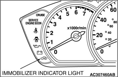 4. The immobilizer indicator light starts flashing in approximately 10 seconds after the ignition switch is turned to the "ON" position.