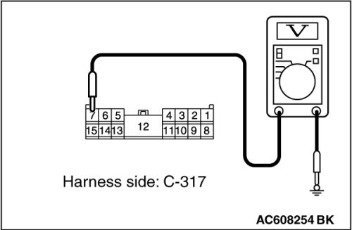 (1)Disconnect ETACS-ECU connector C-317 and measure the voltage available at the junction block side of the connector.
