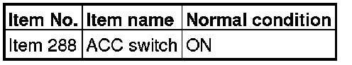 If there is an error to the ignition switch (ACC) input signal, or the ACC relay inside the ETACS-ECU does not operate, the ignition switch (ACC) signal is no longer output to the communication line.