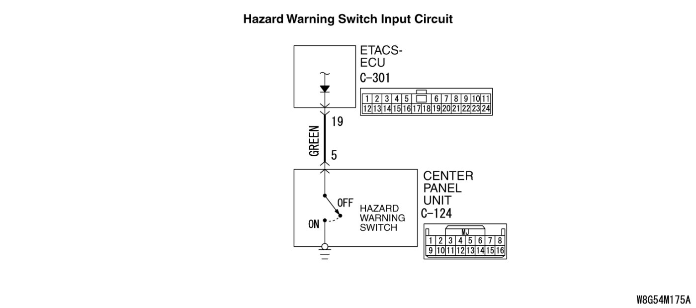 Inspection Procedure 10: ETACS-ECU does not receive any signal from the hazard warning light switch.