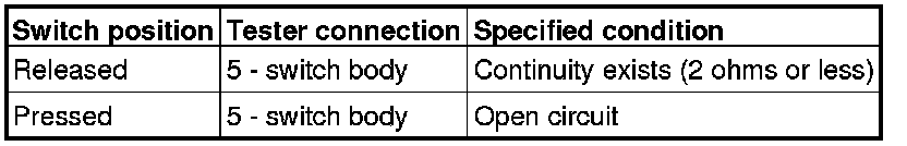 Remove the center panel unit. Then check continuity between the switch terminal and switch body.