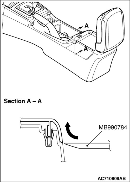 Remove by using special tool MB990784 (ornament remover) as shown in the figure.