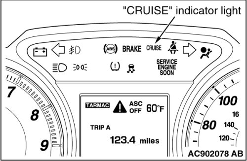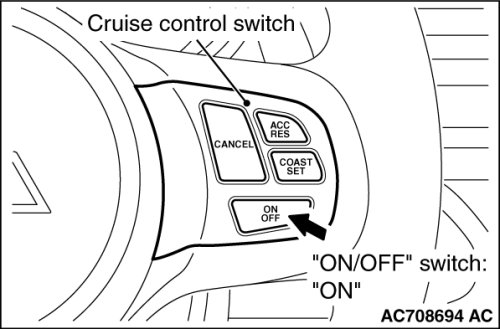 2. Press the "ON/OFF" switch (cruise control system: ON, "CRUISE" indicator light: illuminated.)