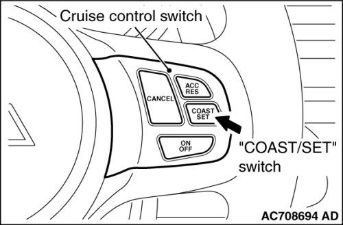 5. Check to be sure that deceleration continues while the "COAST/SET" switch is pressed, and that the speed at the time it was released becomes the constant driving speed.