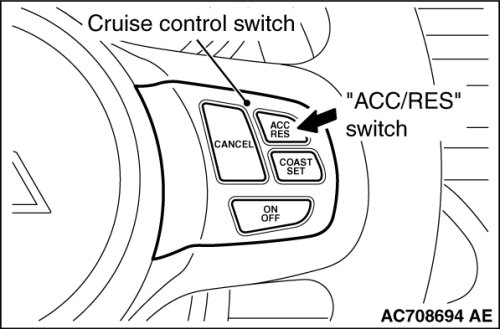 5. Check to be sure that acceleration continues while the "ACC/RES" switch is pushed, and that the speed at the time it was released becomes the constant driving speed.