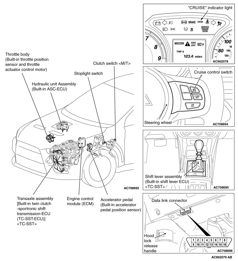 For this cruise control system, in conjunction with the electronic throttle valve control system, the engine control module (ECM) electronically controls the throttle valve.