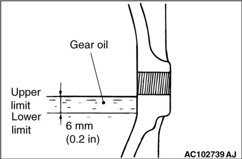 3. If the gear oil level is not in between the upper limit and the lower limit, fill the specified gear oil to the bottom of the filler plug hole.
