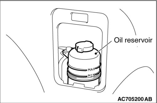 3. Check that the oil reservoir fluid level is in between MAX and MIN.
