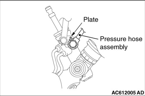 Install the pressure hose assembly plate with its marking located as shown in the figure.