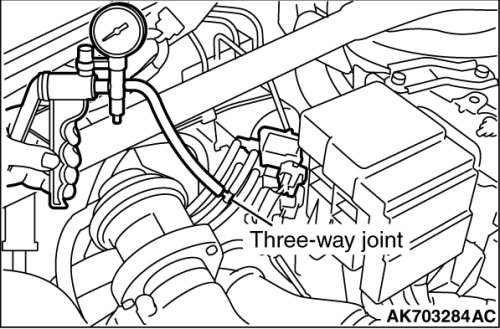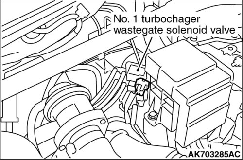 1. Removing the black hose from the No. 1 turbocharger wastegate solenoid or the brown connector, connect three-way joint between the hose and the solenoid.