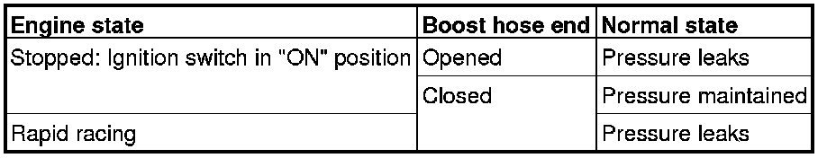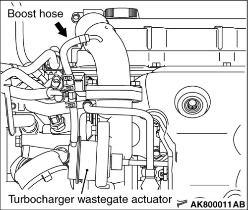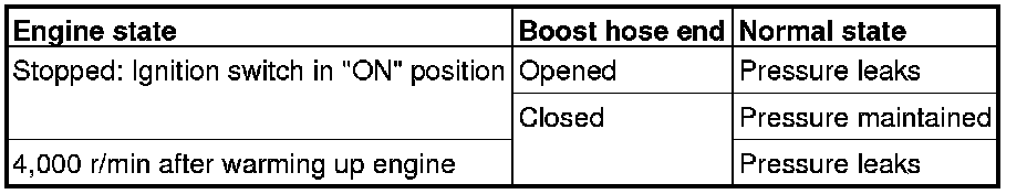 Unless the pressurized state is normal, the turbocharger wastegate actuator, turbocharger wastegate solenoid or the hose might have a malfunction.
